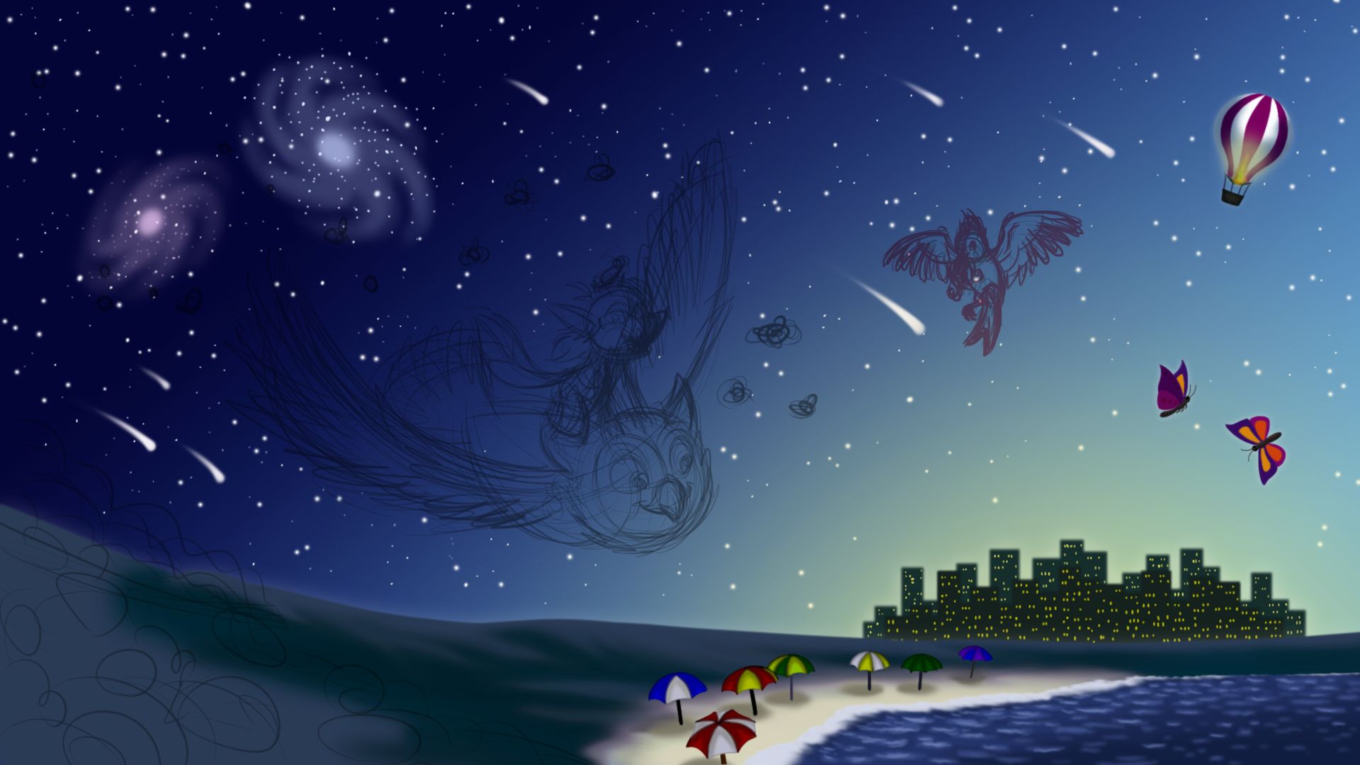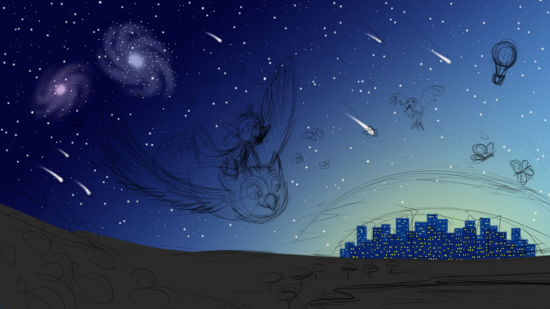 Мне подсказали, что где-то вверху справа (за кадром) может находиться луна... Я не уверена. С освещением и тенями у меня всегда большие и толстые проблемы. -_-"