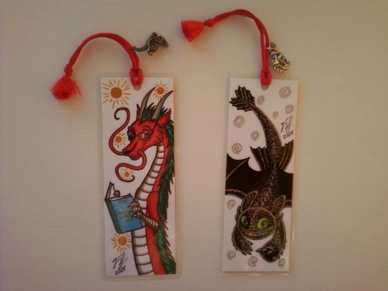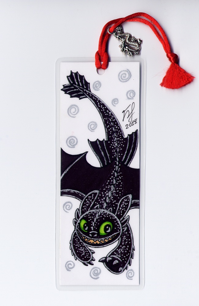 Решила сделать закладки друзьям. Дракане - её фурсона с книгой (она любит читать) и Беззубик для поклонницы этого мульта. В реале закладки смотрятся гораздо лучше (украшены золотой и серебряной гелевыми ручками и искрятся на свету и заламинированы).