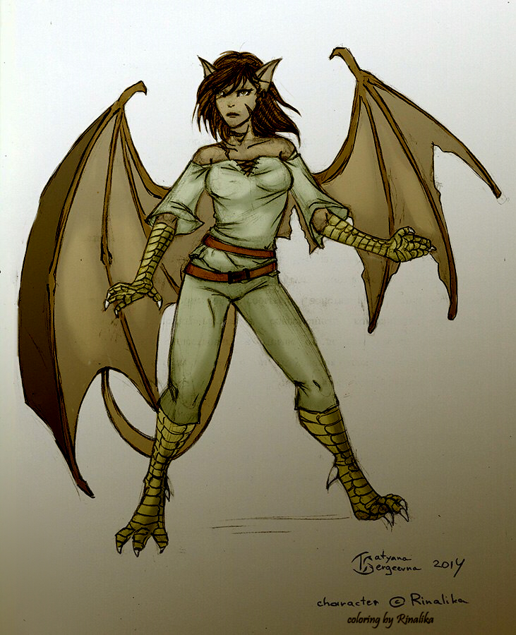 Наш коллаб с Тиэс(TieS-cat). Мой персонаж, Рейн,дочь гаргульи и феникса, внучка Гудзона по фанфику к фэндому Гаргульи.