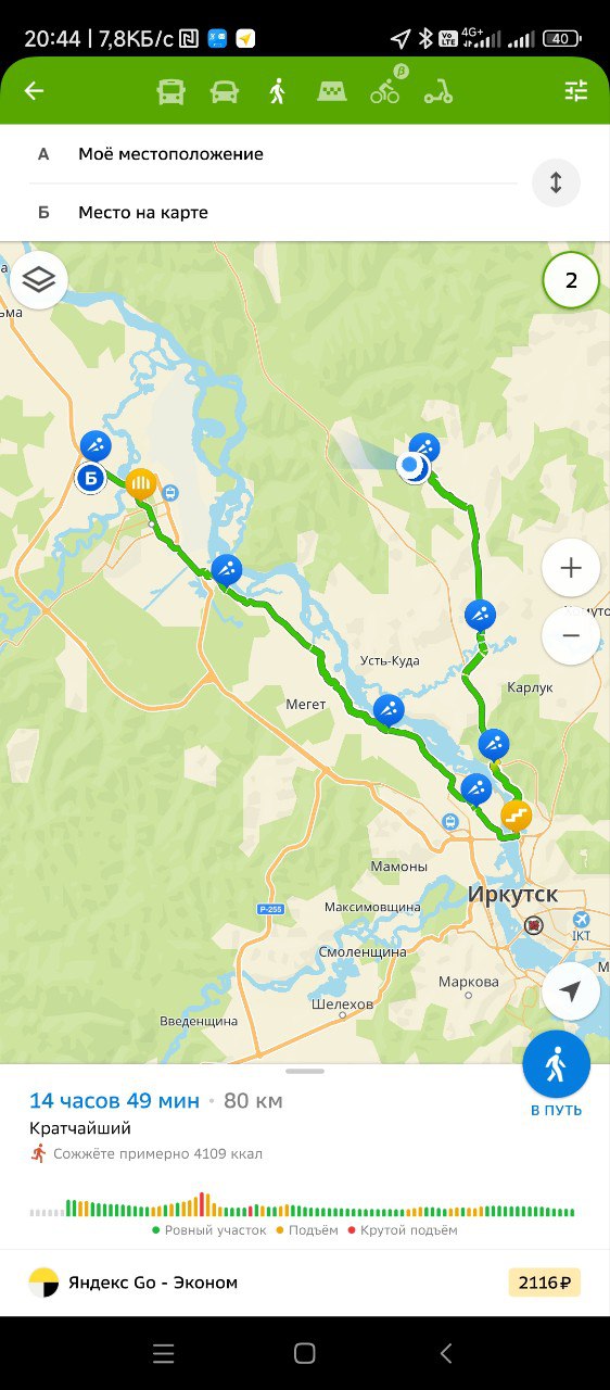 Во время полёта ещё запустил 2Гис и указал начальную точку ради интереса :D