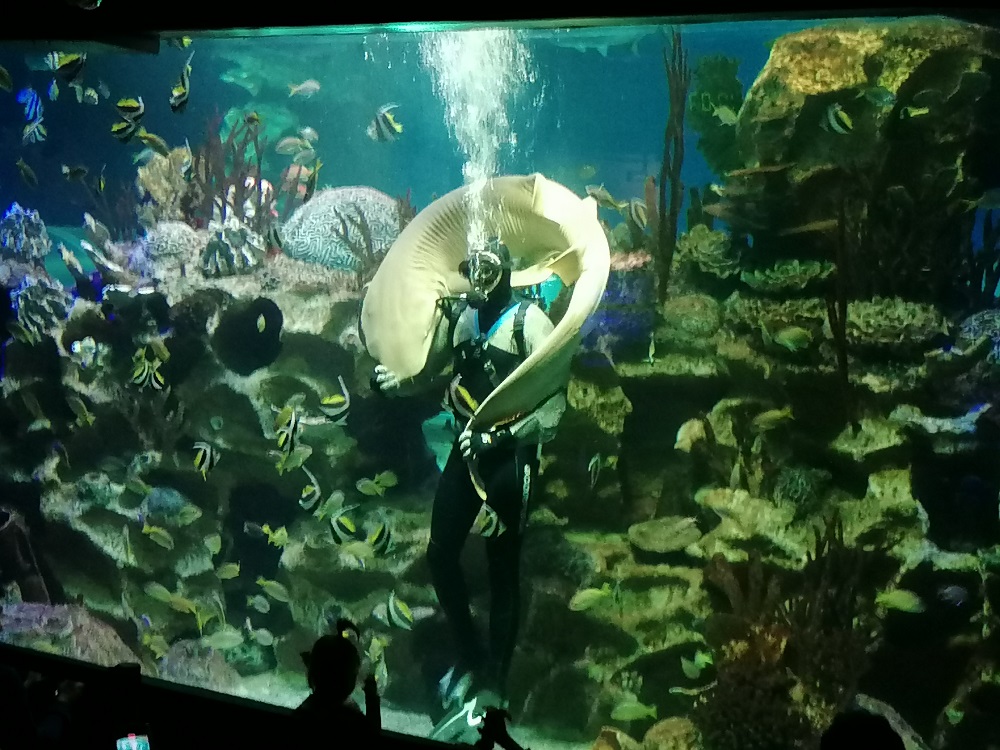 Сходил тут на днях в наш океанариум. Первый раз был в нём в год открытия (как же давно это было...). Вот решил освежить воспоминания и, заодно, посмотреть вечернее шоу с акулами (в прошлый раз его не видел, так как ходил туда с утра, когда народу было мало).