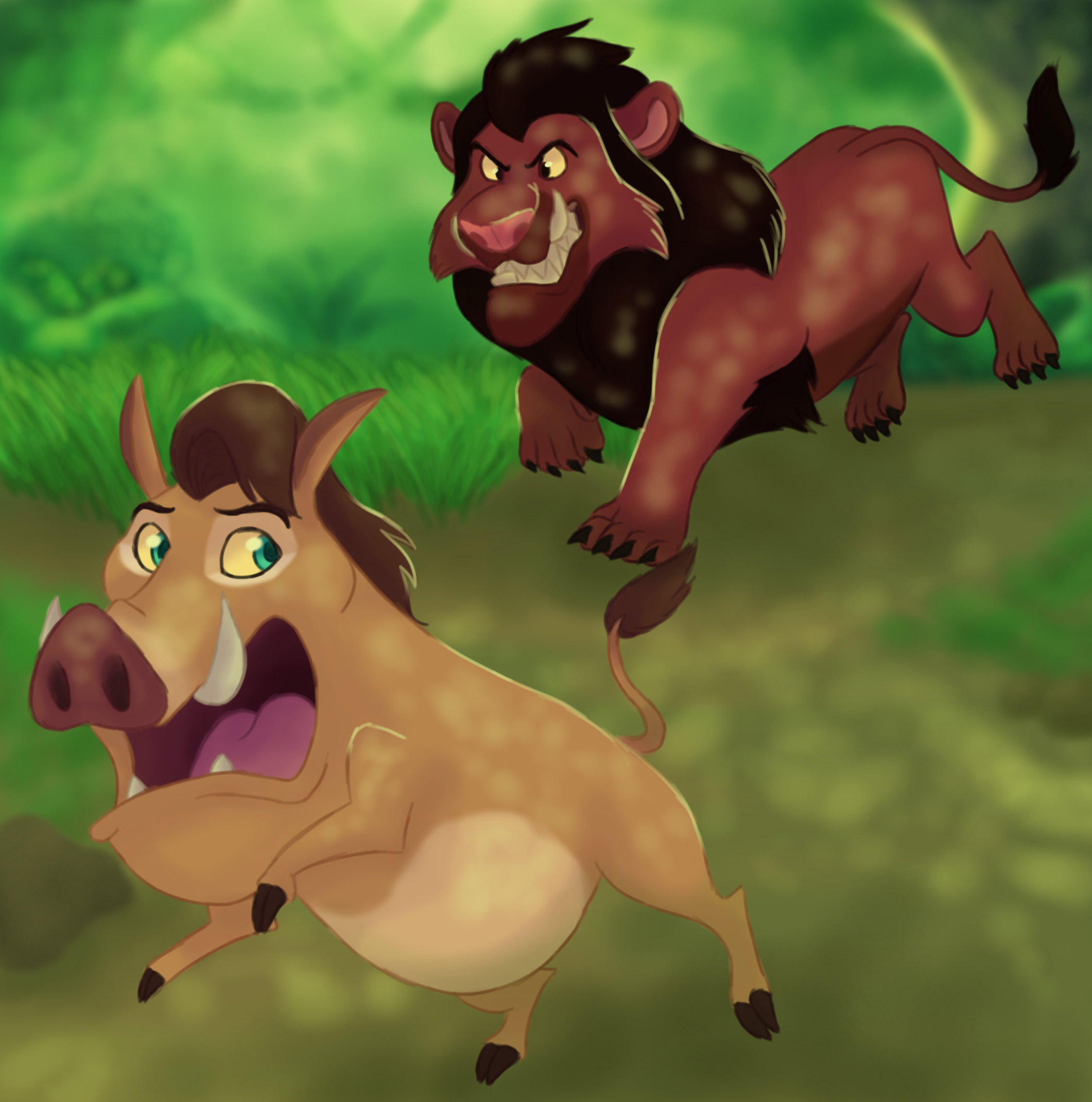 Shabi, Пумба в образе льва гонится за Налой в образе кабанихи.) Поменялись ролями.)