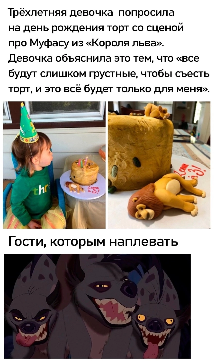 "Интересно, сколько еще мы будем игнорировать тот факт, что Муфаса и Симба были монархами в наследной династии феодального режима, в то время как Шрам был демократически избран электоральным собранием гиен?"