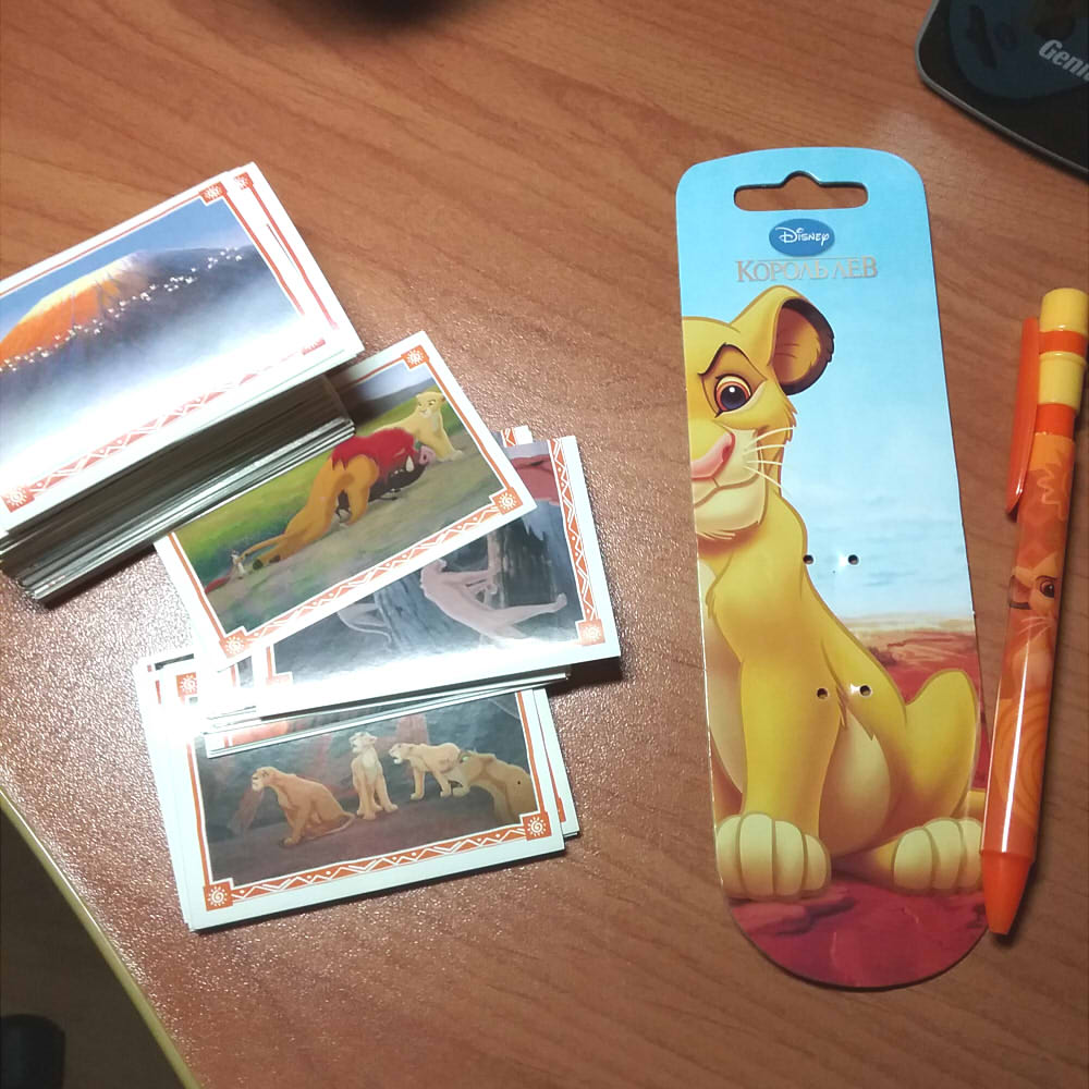 Goldy-Gry писала: Стафф, не стафф... ну, пусть будет. Надеюсь, не реклама магазинов, акция всё равно закончилась уже. В "Магните" собирали наклейки в альбомы, тематики животные Диснея, один разворот с 9 наклейками был посвящён "Королю Льву".