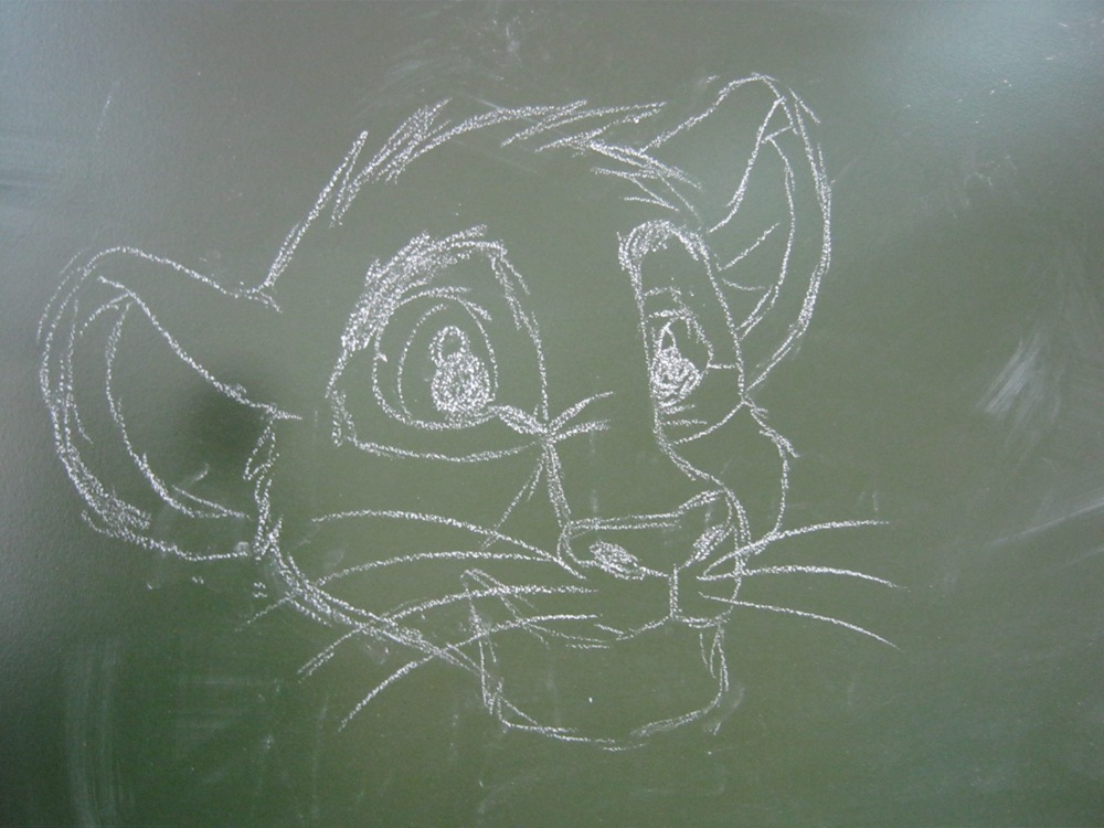Нала и Чози, иллюстрация к рассказу. И сегодняшний Симбыч, мелом на доске (выпускной класс, чем же еще на уроках заняться?) |